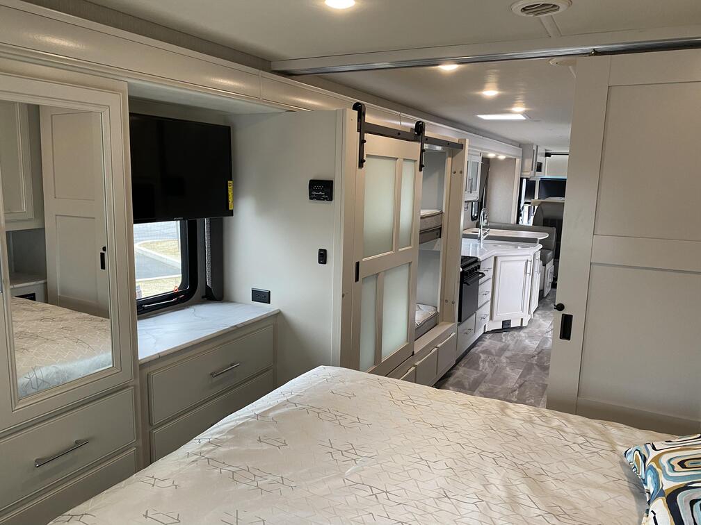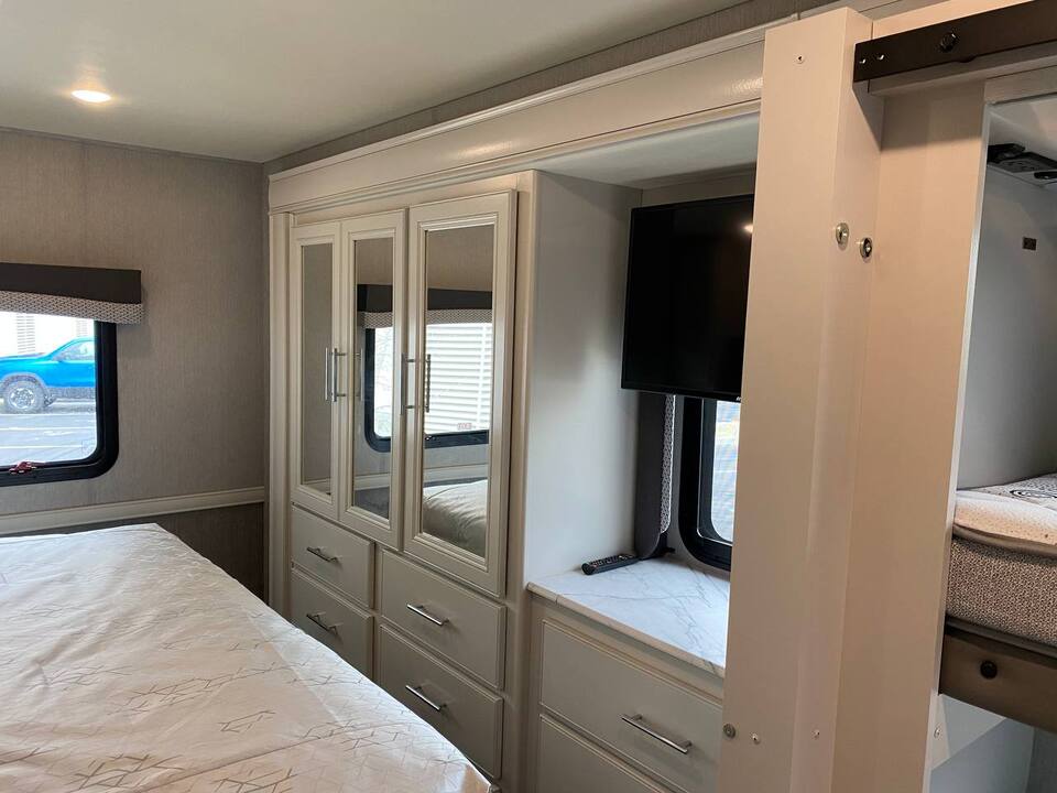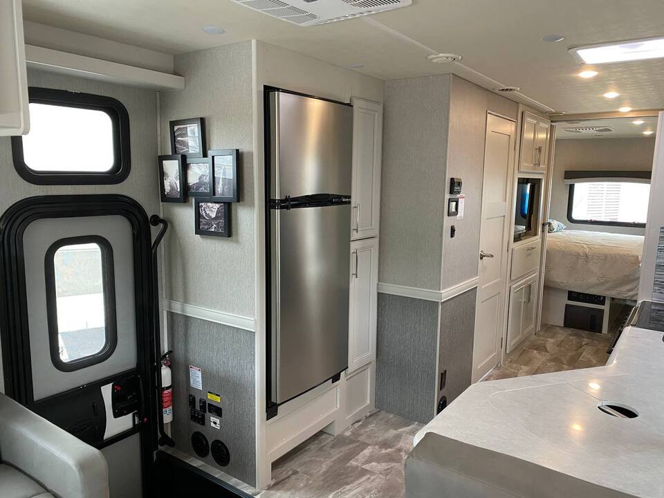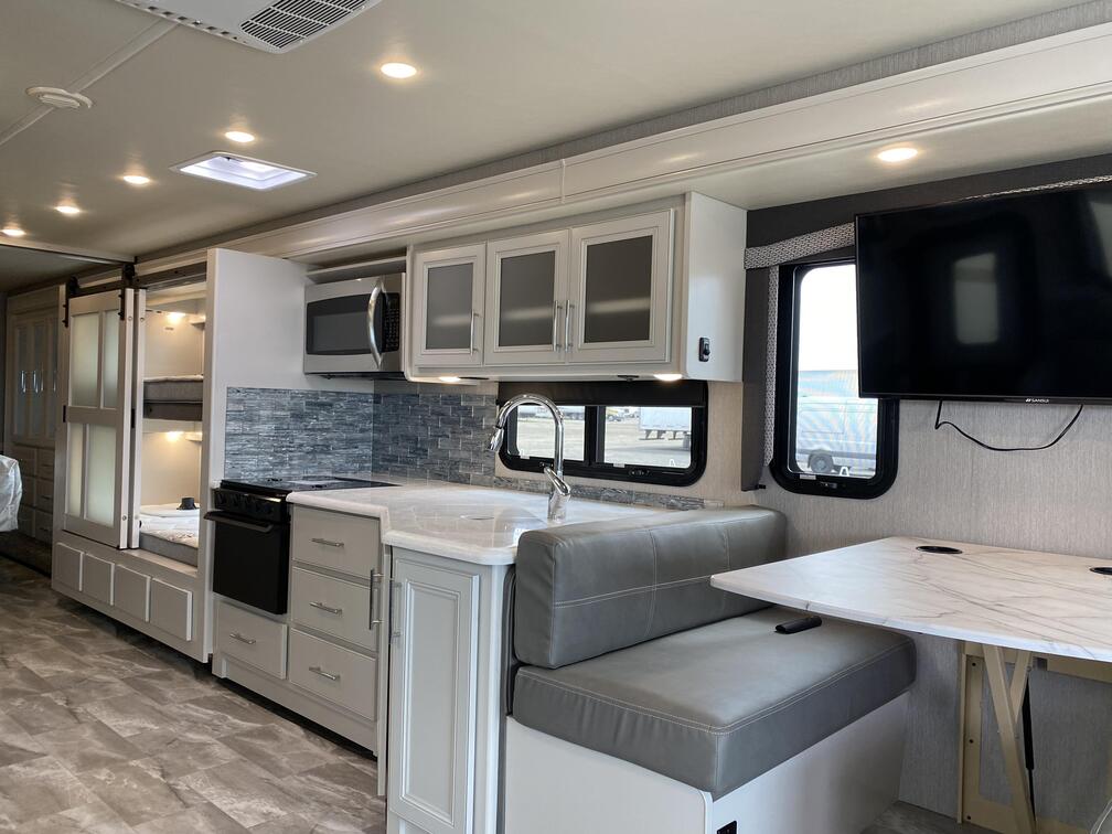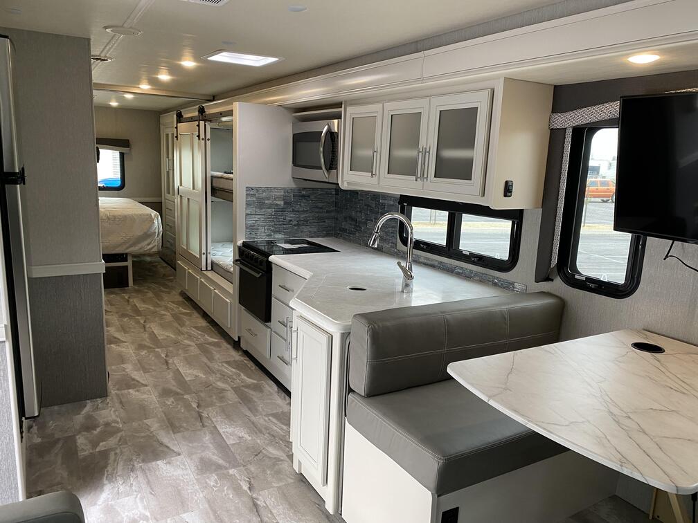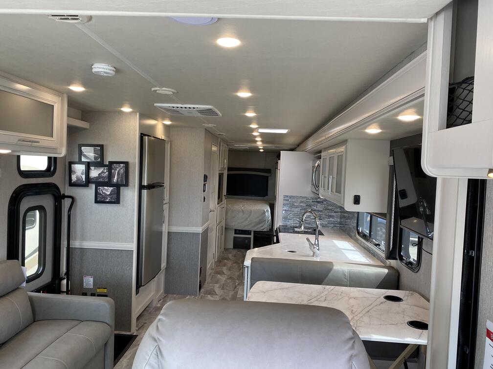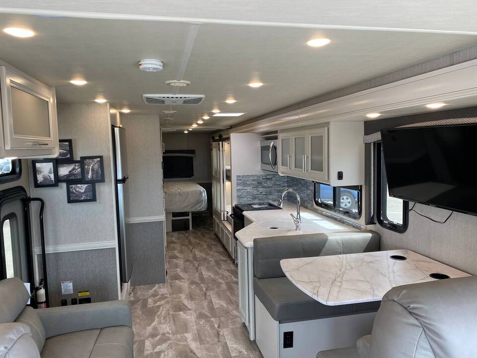 Class A can be drive with regular license class C Brand New 2022 Fleetwood Flair is one of the best solutions for a family trip, also this model is one of the most popular trailers for rent in Sacramento. Specifically, this trailer is non-slide, also there are sliding trailer in stock. A classic variant for a family of 8-10 people, tested by time and thousands of satisfied families.This model is convenient for both the driver and passengers. Despite the modest size, the interior is spacious and has everything you need. The shower and toilet are located comfortably in the corner, also there is a thoughtful kitchen with a large enough fridge.