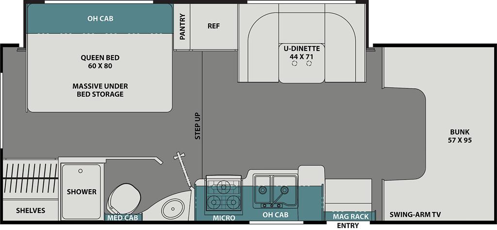 25 FT Coachmen freelander is one of the best solutions for a family trip, also this model is one of the most popular trailers for rent in Sacramento. Specifically, this trailer is non-slide, also there are sliding trailer in stock. A classic variant for a family of 4-6 people, tested by time and thousands of satisfied families.This model is convenient for both the driver and passengers. Despite the modest size, the interior is spacious and has everything you need. The shower and toilet are located comfortably in the corner, also there is a thoughtful kitchen with a large enough fridge.