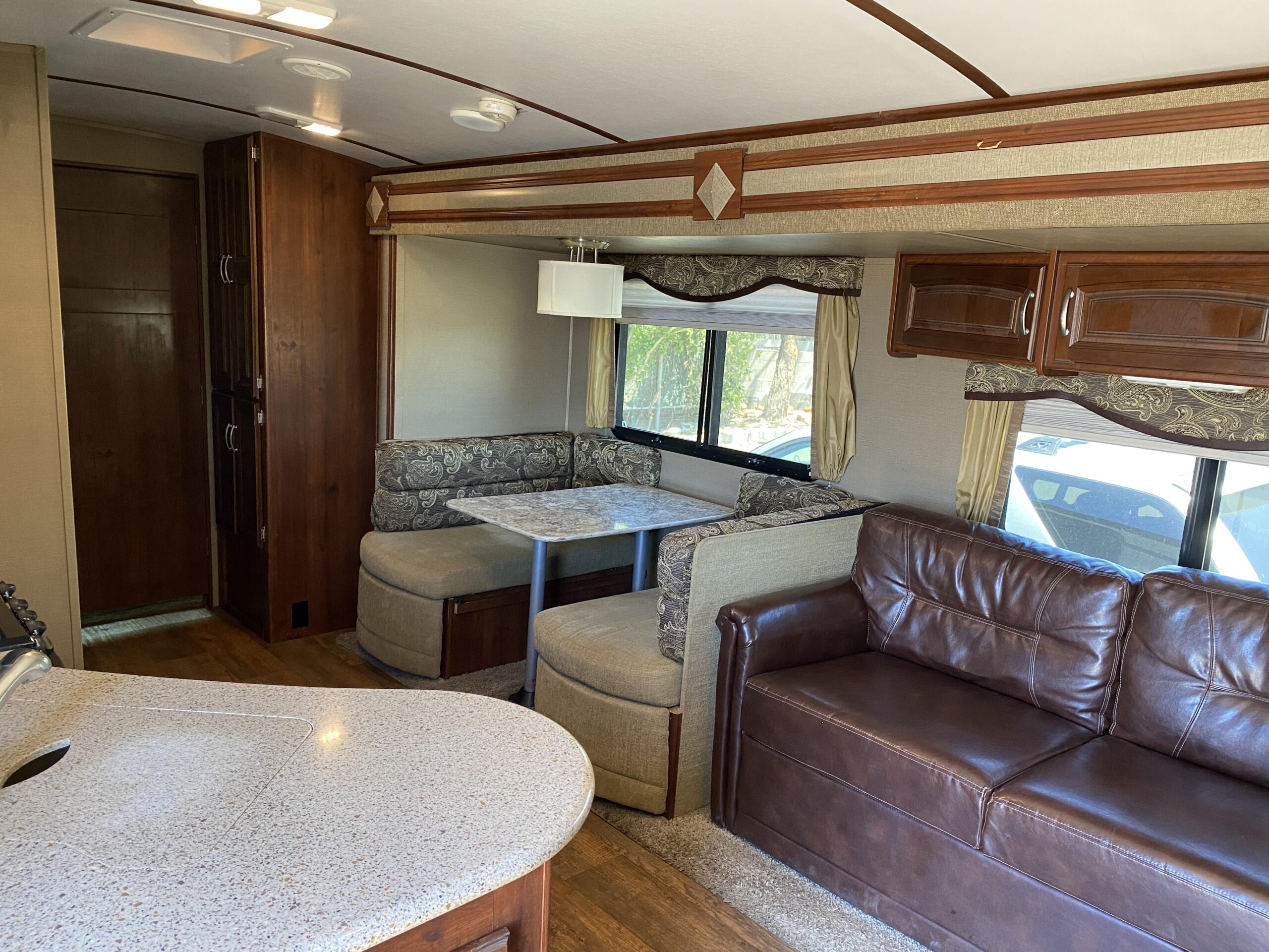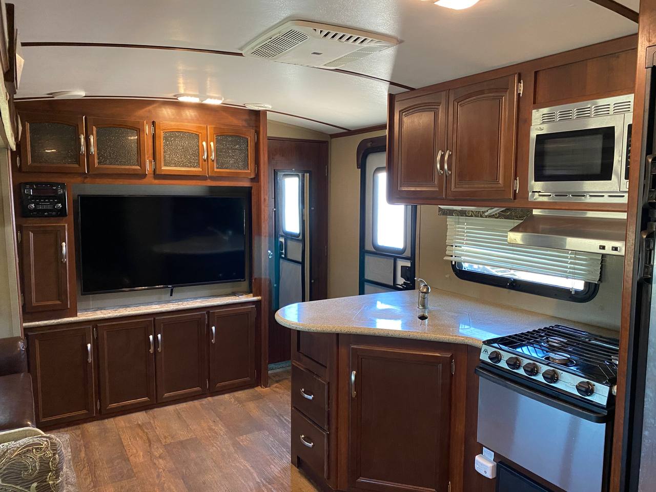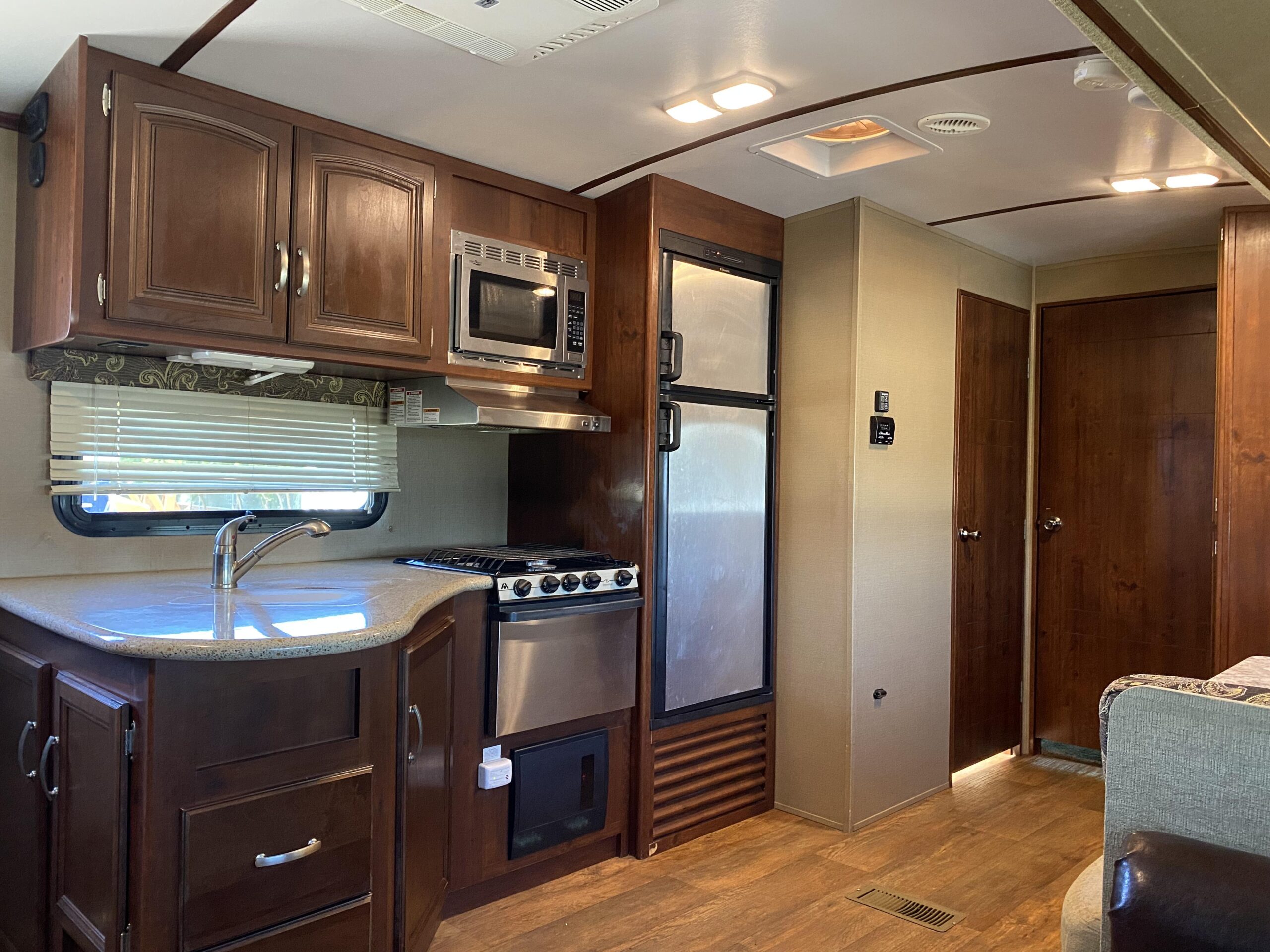 Outback Keystone Super-Lite is one of the best solutions for a family trip, also this model is one of the most popular trailers for rent in Sacramento. Specifically, this trailer is non-slide, also there are sliding trailer in stock. A classic variant for a family of 8-10people, tested by time and thousands of satisfied families.This model is convenient for both the driver and passengers. Despite the modest size, the interior is spacious and has everything you need. The shower and toilet are located comfortably in the corner, also there is a thoughtful kitchen with a large enough fridge.